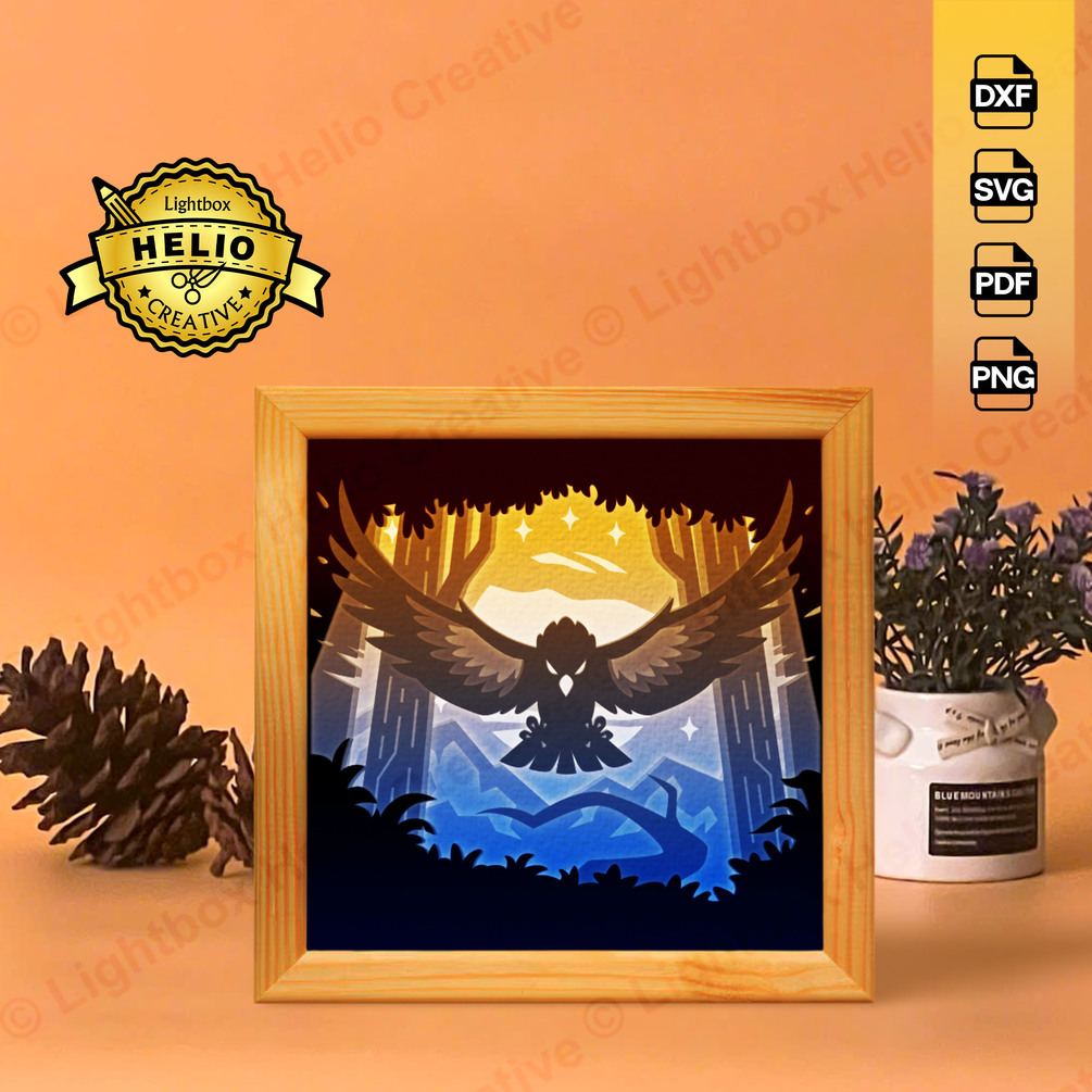 Transform your space with the tranquil charm of this Soaring Eagle Lightbox. Featuring layered papercraft designs and a soft LED glow, this DIY shadow box brings a magical forest scene to life. Perfect for home decor or a thoughtful gift for nature lovers.